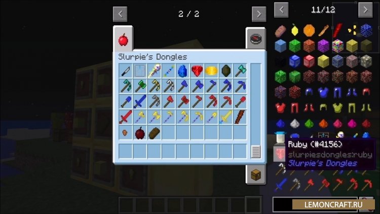 Мод на новые предметы, руды, растения Slurpie's Dongles обширный мод, который добавит в игру новые блоки, оружие, предметы, инструменты, растения, что значительно разнообразит игру и сделает ее более веселее. Новые руды позволят вам создавать более качественное оружие и броню. Новые инструменты будут иметь более высокие характеристики чем уже используемые вами. Несколько новых блоков декора сделают игру красочней. В принципе, ничего глобального мод не несет, просто немного освежит игру.