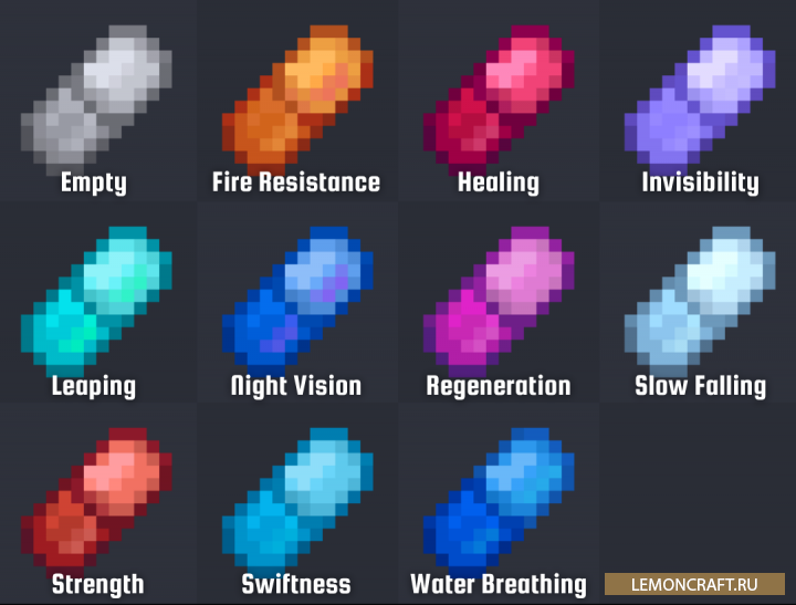 Мод на волшебные пилюли Potion Pills добавляет в игру набор пилюль, с помощью которых вы сможете получить эффект зелий, но при этом их действие будет короче чем у зелий. Преимущество пилюль в том, что на их приготовление не надо будет тратить время, потребуется меньше материалов и вы сможете складывать их в стек.